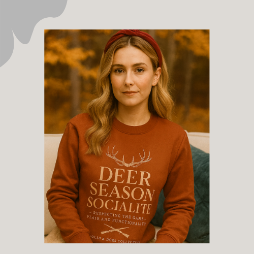 She’s as soft as pearls and as sharp as antlers. The woods taught her strength. The world taught her style. Every stitch tells the story of a woman who can walk through the Backwoods and still outshine the city lights. That’s backwoods boujee.